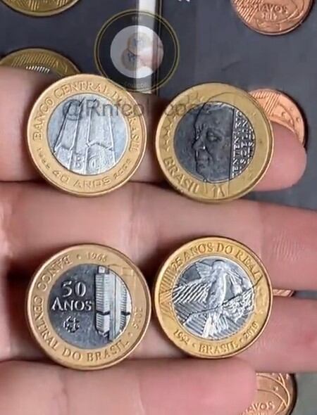 Segundo o criador de conteúdo, a moeda de 1 real em em comemoração aos 50 anos do Banco Central é uma das mais procuradas entre os colecionadores. Se o item apresentar o reverso invertido seu valor de catálogo é de R$ 1.350.