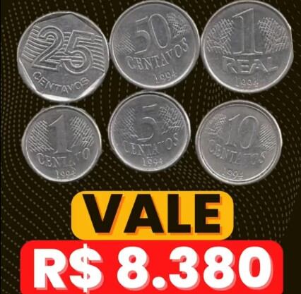 A primeira moeda valiosa da lista é esta moeda de 1 centavo de 1994. No total foram feitas 887 milhões de itens deste tipo e algumas delas possuem o reverso invertido, o que pode render ao proprietário R$ 280.