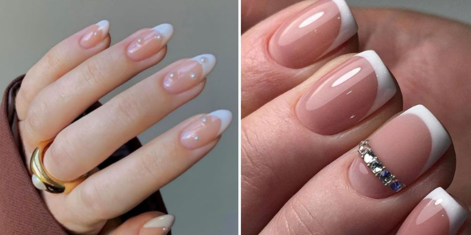 Mas se você não conseguir escolher apenas um modelo de unhas francesas brancas com pedras para este outono 2023, então combine todos eles!