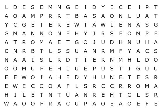 Se concluiu o caça-palavras sem consultar o resultado, saiba que fez um belo trabalho! Caso contrário, não se preocupe. Afinal, este não é um teste tão simples. Abaixo você confere a resposta do desafio: