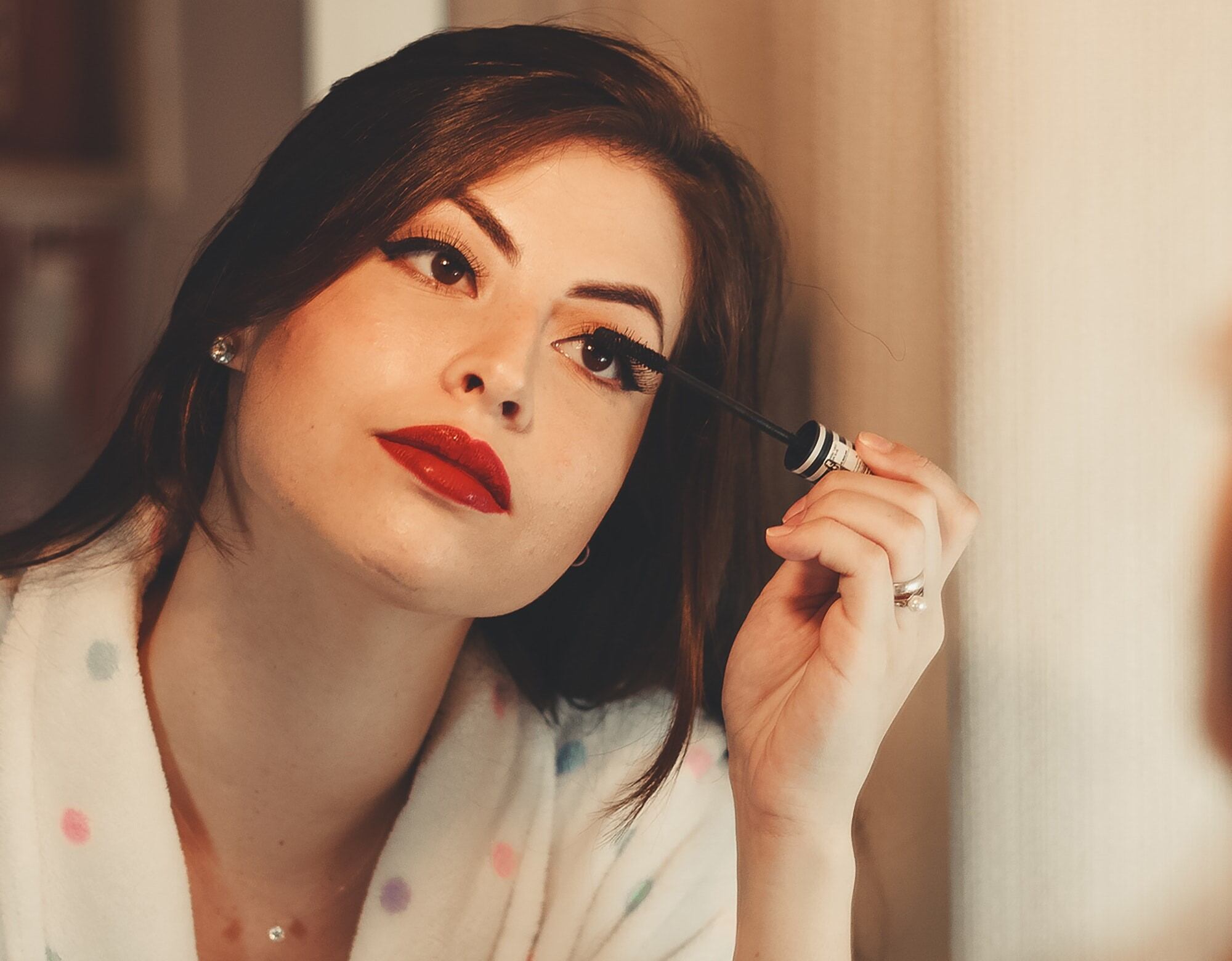 Uma camada ou duas do seu rímel favorito é a maneira mais fácil de abrir os olhos e fazê-los parecerem maiores. Se você não é uma grande fã de kajal e delineador, por exemplo, um bom rímel volumizador mudará seu visual em um instante.