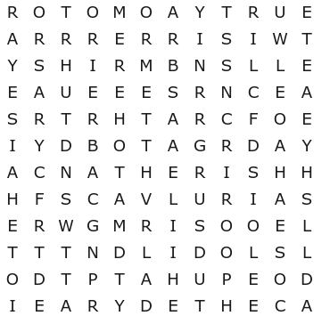 Se concluiu o caça-palavras sem consultar o resultado, saiba que fez um belo trabalho! Caso contrário, não se preocupe. Afinal, este não é um teste tão simples. Abaixo você confere a resposta do desafio: