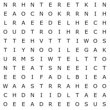 A seguir, veremos se é capaz de localizar a palavra “triturar” no caça-palavras em apenas alguns segundos. Observe bem no quadro abaixo: