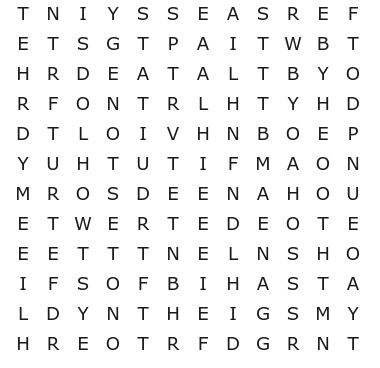 Se concluiu o caça-palavras sem consultar o resultado, saiba que fez um belo trabalho! Caso contrário, não se preocupe. Afinal, este não é um teste tão simples. Abaixo você confere a resposta do desafio: