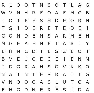 Se concluiu o caça-palavras sem consultar o resultado, saiba que fez um belo trabalho! Caso contrário, não se preocupe. Afinal, este não é um teste tão simples. Abaixo você confere a resposta do desafio: