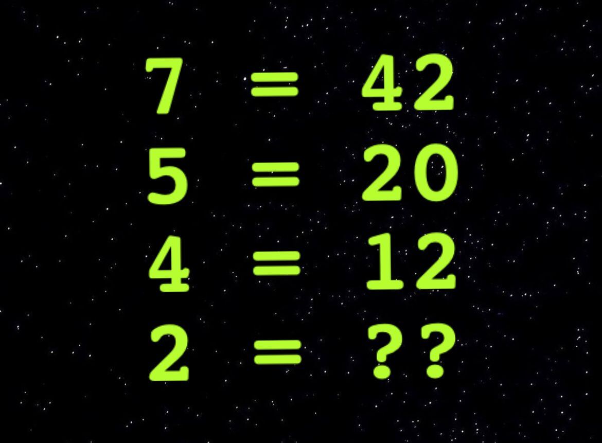 Neste artigo, apresentamos um esquema que requer raciocínio lógico e dinâmico, a fim de tentar descobrir qual seria o próximo número de uma sequência proposta. A figura revela certo padrão, mostrando 7 = 42, 5 = 20 e 4 = 12. Haja vista a continuação dos resultados, poderia dizer o que se iguala ao número 2?