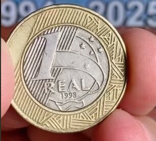 O item que você confere a seguir, por exemplo, foi cunhado em 1998, e de acordo com o TikTok ‘RNF Coleções’, esta moeda de apenas 1 real pode valer R$ 30 mil!