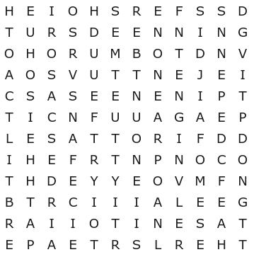 Se concluiu o caça-palavras sem consultar o resultado, saiba que fez um belo trabalho! Caso contrário, não se preocupe. Afinal, este não é um teste tão simples. Abaixo você confere a resposta do desafio: