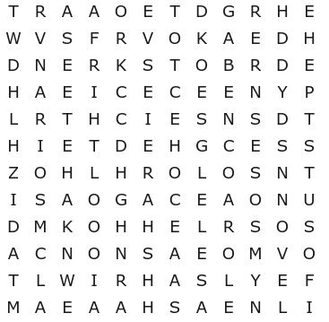 Se concluiu o caça-palavras sem consultar o resultado, saiba que fez um belo trabalho! Caso contrário, não se preocupe. Afinal, este não é um teste tão simples. Abaixo você confere a resposta do desafio: