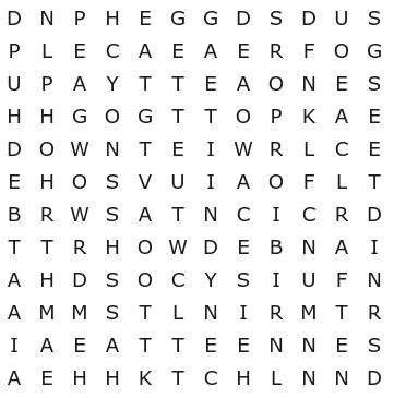 Se concluiu o caça-palavras sem consultar o resultado, saiba que fez um belo trabalho! Caso contrário, não se preocupe. Afinal, este não é um teste tão simples. Abaixo você confere a resposta do desafio: