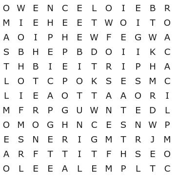 Se concluiu o caça-palavras sem consultar o resultado, saiba que fez um belo trabalho! Caso contrário, não se preocupe. Afinal, este não é um teste tão simples. Abaixo você confere a resposta do desafio: