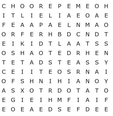 Se concluiu o caça-palavras sem consultar o resultado, saiba que fez um belo trabalho! Caso contrário, não se preocupe. Afinal, este não é um teste tão simples. Abaixo você confere a resposta do desafio: