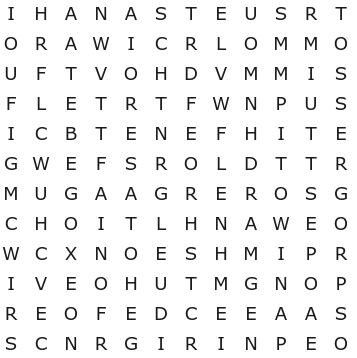 Se concluiu o caça-palavras sem consultar o resultado, saiba que fez um belo trabalho! Caso contrário, não se preocupe. Afinal, este não é um teste tão simples. Abaixo você confere a resposta do desafio: