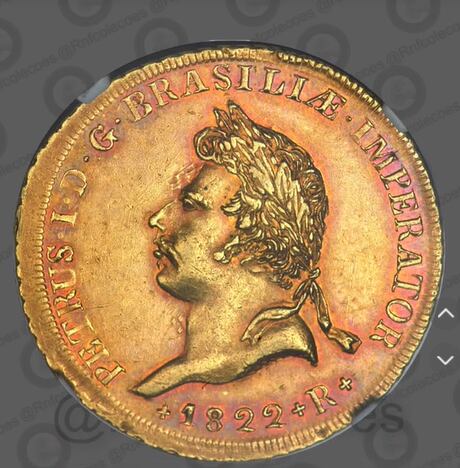 Conhecida como ‘Peça da Coroação de D. Pedro I’, existem apenas 16 unidades deste item. É considerada a moeda mais valiosa do primeiro sistema monetário do país, chegando em janeiro de 2014 no valor de US$ 499.375, aproximadamente R$ 2.458.822.
