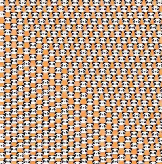 A proposta consiste no seguinte: há diversos pandas felizes na imagem, sendo necessário apontar o único que está triste. O teste não é tão simples quanto parece. Observe bem a imagem abaixo: