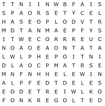 Se finalizou o caça-palavras sem consultar o resultado, está de parabéns! Caso contrário, não se preocupe. Afinal, este não é um teste tão simples. Abaixo você confere a resposta do desafio: