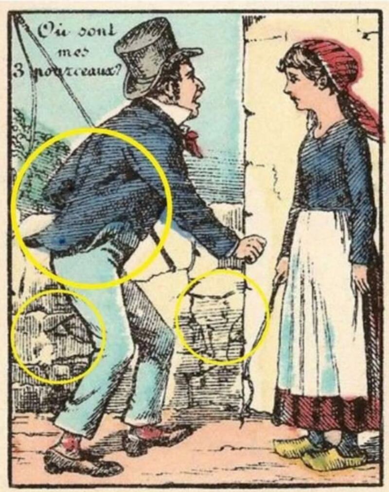 A proposta é a seguinte: existem três porcos camuflados na imagem, sendo necessário apontá-los em apenas seis segundos. Observe bem a imagem abaixo: