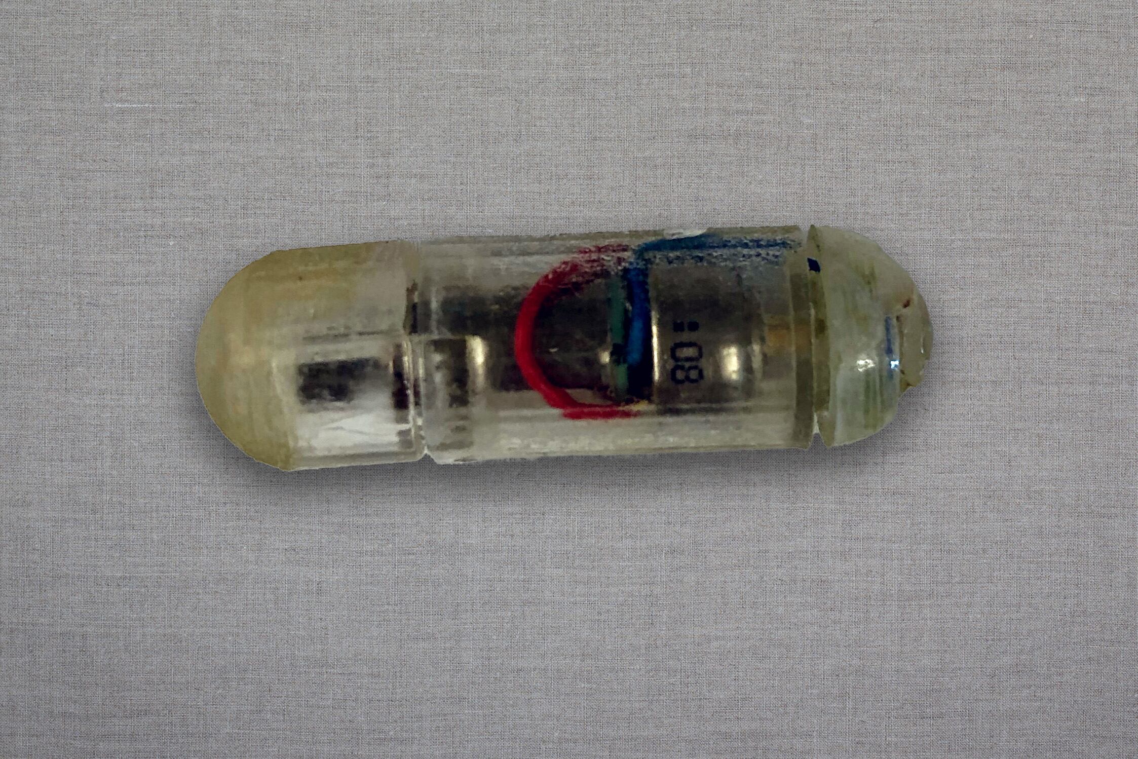 - Todos os componentes eletrônicos estão encapsulados em uma cápsula biocompatível do tamanho de um comprimido triplo zero (aproximadamente do tamanho de um multivitamínico grande). A cápsula passa pelo organismo como qualquer outro sólido. Nos seres humanos, o tempo médio de trânsito é de cerca de 30 horas. Nos porcos, o tempo de trânsito é mais lento e varia de 4 a 7 dias.