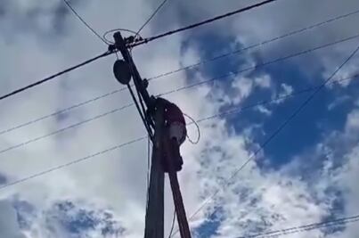 As imagens, que circulam nas redes sociais desde o ocorrido, mostram o homem em cima de um poste, aparentemente manipulando os fios com as mãos desprotegidas.