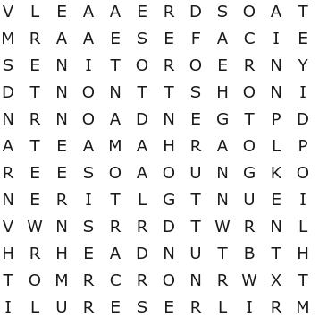 Se concluiu o caça-palavras sem consultar o resultado, saiba que fez um belo trabalho! Caso contrário, não se preocupe. Afinal, este não é um teste tão simples. Abaixo você confere a resposta do desafio: