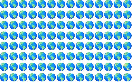A proposta consiste no seguinte: você tem nove segundos para encontrar o emoji da Terra em ângulo diferente na imagem. Observe bem abaixo: