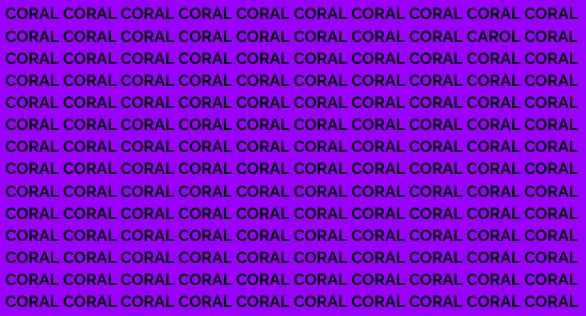 A proposta é a seguinte: você tem apenas nove segundos para encontrar a palavra que foge do padrão “CORAL” na figura. Observe bem a imagem abaixo: