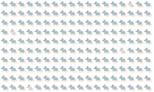 A proposta é a seguinte: é necessário encontrar todos os ratos que fogem do padrão na figura. Observe bem a imagem abaixo: