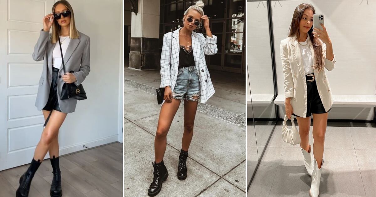 A combinação de blazer com shorts e botas é uma combinação glamorosa que você deve experimentar pelo menos uma vez, o único aspecto a ter em mente é que haja um equilíbrio entre as duas peças, pois devem ser proporcionais, além disso, não tenha medo de experimentar e adicionar o seu toque pessoal ao seu visual.