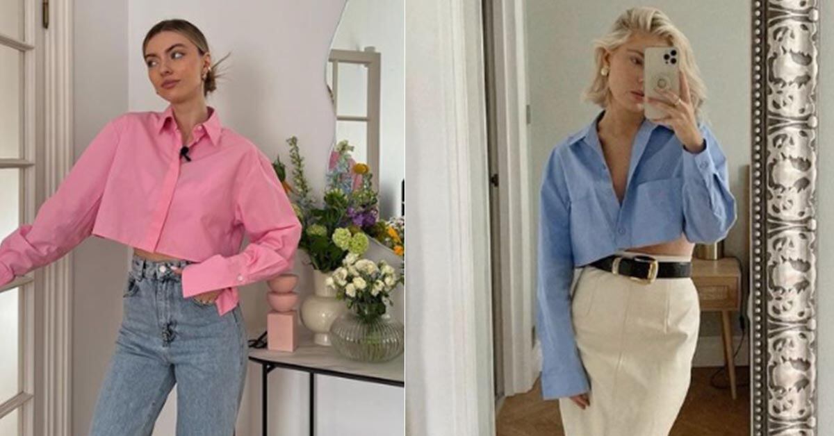 Trata-se das camisas cropped, que são uma combinação entre um top e uma camisa clássica e o melhor é que favorece todos os tipos de corpo e podem ser combinadas de várias formas.