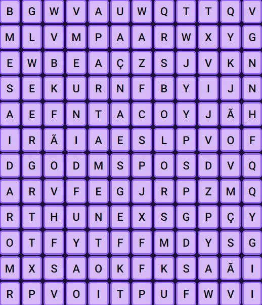 Por meio de caça-palavras, é interessante explorar um lado habilidoso e ágil com o olhar. Lembre-se que ele deverá ser realizado dentro do prazo estipulado de 12 segundos.