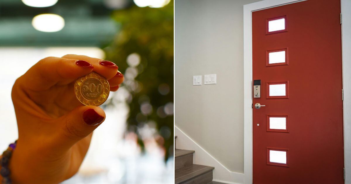 E é que depende da localização onde as coisas são colocadas. Um dos lugares onde as moedas costumam ser colocadas é atrás da porta de entrada de uma casa.