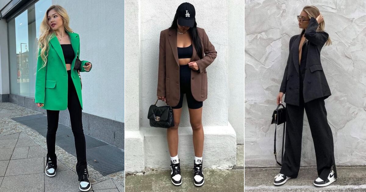 Uma das combinações que não pode faltar para você é combinar blazer, saia curta e tênis jordan, você vai parecer casual, chique e ter um toque sexy na sua aparência.