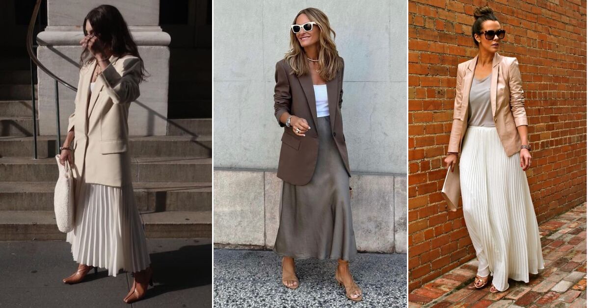 O blazer com saia longa é a combinação mais elegante que você tem que experimentar