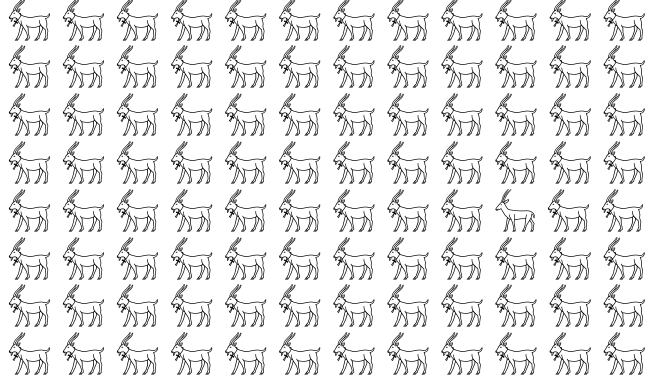 Agora você tem nove segundos para encontrar o animal na figura que foge do padrão. Observe a imagem a seguir com atenção: