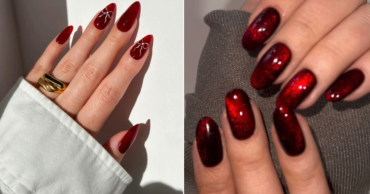 Se você se interessou por esta manicure e quer usá-la, basta continuar lendo para ver quatro ideias de unhas vermelho cereja para inspirar você a usar o design em tendência para a próxima temporada de outono.