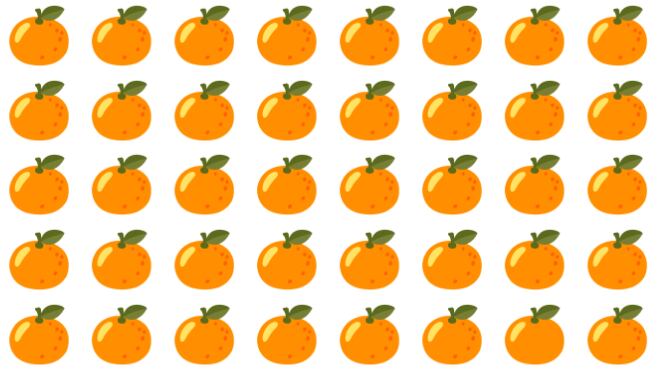 Por meio deste artigo, vamos descobrir como sua habilidade tem sido aproveitada nos últimos tempos! Confira o seu dever a seguir: encontre uma laranja diferente das demais em apenas oito segundos. Observe bem a imagem abaixo: