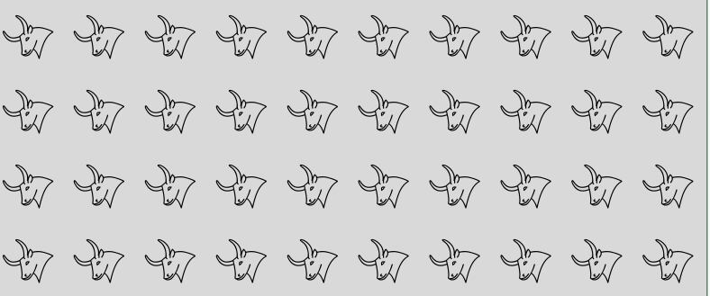 Será que você se enquadra dentre os possibilitados? Abaixo você se depara com algumas figuras de cabeça de boi, sendo apenas uma delas a diferenciada. Consegue encontrar a fora do padrão em 18 segundos? Observe: