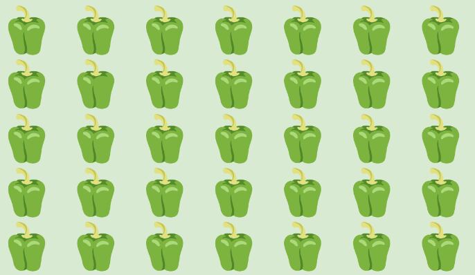 Agora você tem nove segundos para encontrar um pimentão diferente das outras. Observa a imagem a seguir com atenção: