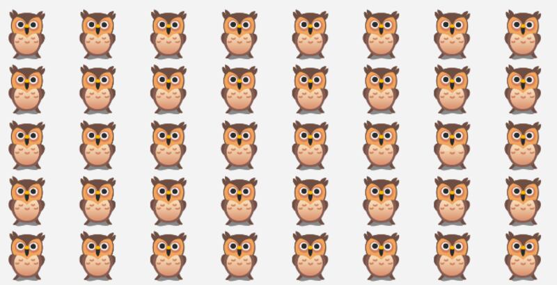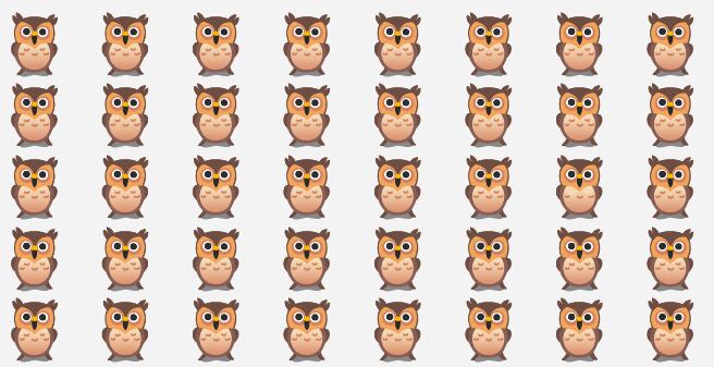 A proposta é a seguinte: busque pela coruja diferente das outras na foto em apenas oito segundos. Observe bem a foto abaixo.