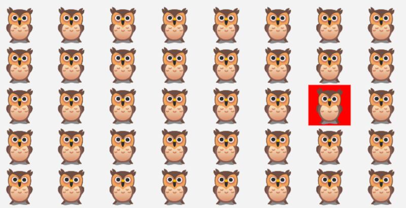 Se foi possível concluir a busca pela coruja diferente das demais sem antes consultar o resultado, tiramos o chapéu por sua performance! Caso contrário, não se preocupe. Afinal, este não é um desafio tão simples. Abaixo você confere a resposta: