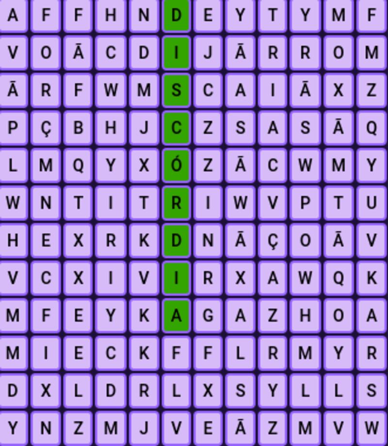 A seguir, veremos se é capaz de encontrar a palavra “discórdia” no caça-palavras em apenas alguns segundos. Observe bem no quadro abaixo: