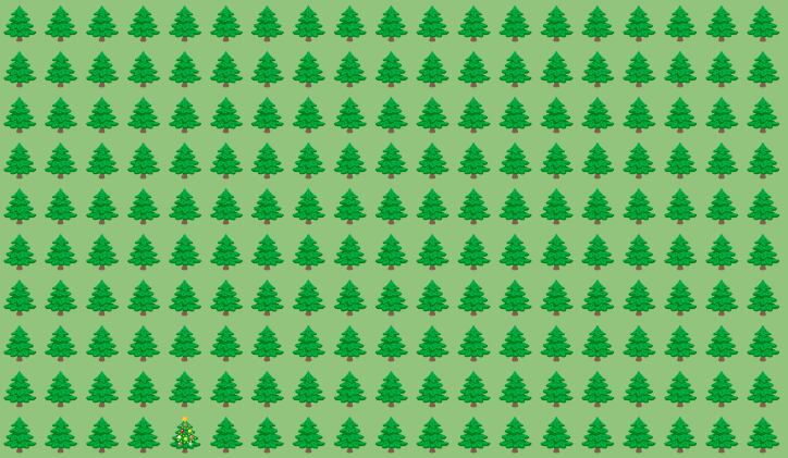 Atenção, hein? O tempo está correndo! Você tem 10 segundos para encontrar a árvore de Natal que não é como as outras. Será que você consegue? Se sim, vai brilhar mais que a estrela do topo da árvore!