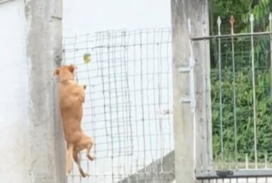 Uma cadela caramelo chamou a atenção dos internautas ao ser flagrada escalando o portão de casa para fugir. A tutora, Tainá, registrou o momento e compartilhou nas redes sociais, se tornando viral.