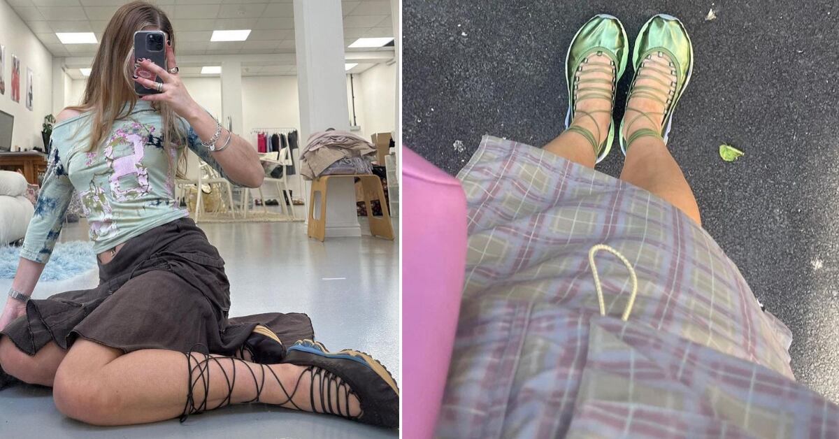 Mas longe da delicadeza do Adidas Samba, que também emula o luxo silencioso ou a rebeldia de um par de Converse, essas misturas de mundos, pois são compostas por solas grossas, shapes estilo Mary Jane e laços, sim, muitos laços que podem variar de laços a decotes que descem por parte das pernas, tornando-as uma proposta bem feminina se você for uma romântica incurável.