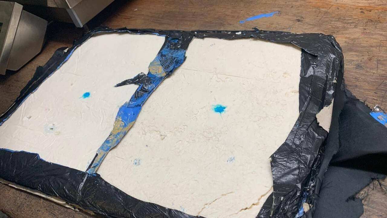 A segunda bagagem apontada pelos cães ocultava 2,461 kg de cocaína em fundo falso. A mala pertencia a um passageiro boliviano que viajaria para Entebbe, na Uganda.