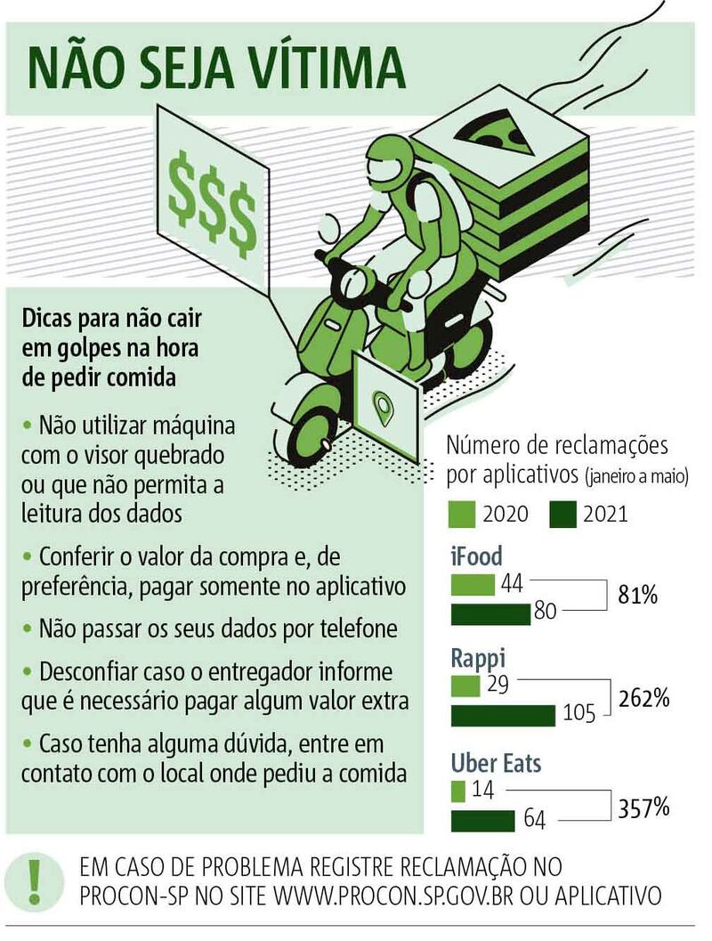 “Quem for vítima deve acionar o Procon-SP. Nós iremos apurar a responsabilidade da empresa e acionar a polícia. As empresas de delivery devem responder pelos problemas e ressarcir o consumidor”, afirma o diretor executivo do Procon-SP, Fernando Capez. A dica do órgão é realizar todos os pagamentos apenas pelos aplicativos e lembrar que não são realizadas cobranças extras.