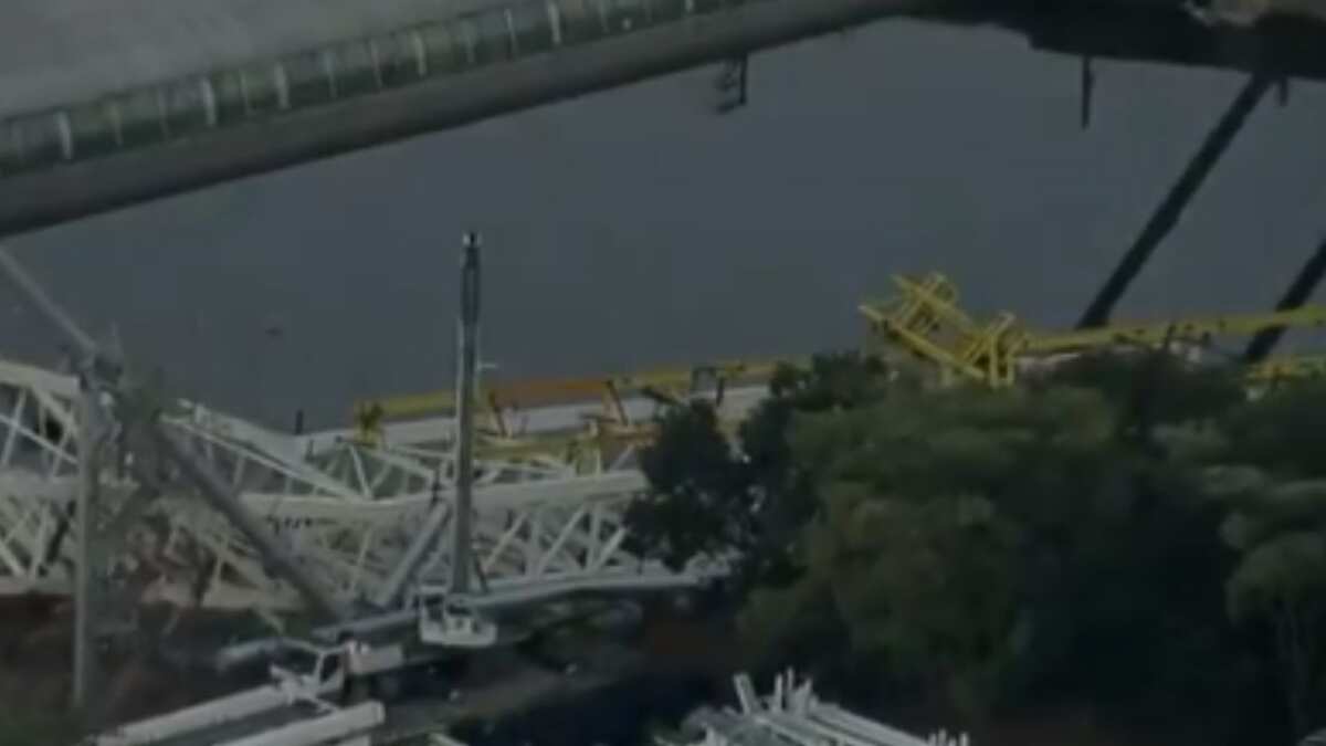O motivo da queda da ponte ainda é desconhecido. O local está em obras para a construção de uma nova passarela.