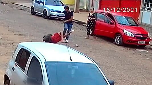 Imagens de câmeras de segurança mostram o momento em que ele é chamado de ladrão e passa a ser agredido pelo casal. Gabriel é derrubado, alvo de chutes, pisões e tapas em uma sessão de espancamento que dura quase três minutos. Ana Paula chega a colocar os joelhos na barriga do jovem, enquanto Jhonnatan pisa em seu pescoço. Os ataques só cessam quando um vizinho avisa que a vítima é moradora do prédio.
