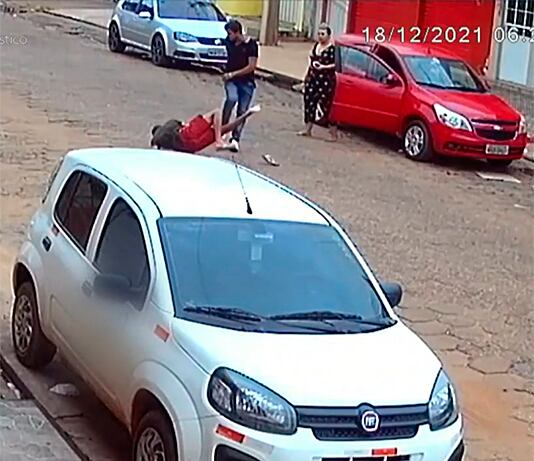 Imagens de câmeras de segurança mostram o momento em que ele é chamado de ladrão e passa a ser agredido pelo casal. Gabriel é derrubado, alvo de chutes, pisões e tapas em uma sessão de espancamento que dura quase três minutos. Ana Paula chega a colocar os joelhos na barriga do jovem, enquanto Jhonnatan pisa em seu pescoço. Os ataques só cessam quando um vizinho avisa que a vítima é moradora do prédio.