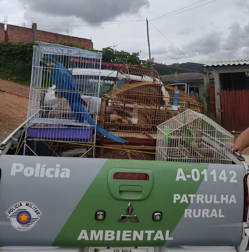 O flagrante aconteceu após o recebimento de denúncias anônimas. Policiais do 1º Batalhão de Polícia Ambiental (BPAmb) foram até um imóvel na Rua da Olaria, onde localizaram 11 gaiolas contendo uma arara-canindé, um papagaio-verdadeiro, três trinca-ferro, um sabiá-poca, um bigodinho, um curió, um corrupião, um inhapim e um ring neck (exótica).